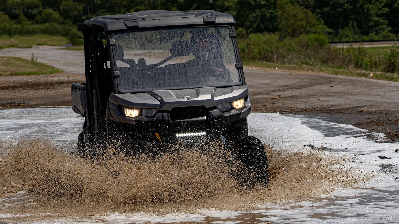 Turn any pitch-black situation into day with this 12-inch LED bumper light kit by Rough Country. Unlike roof- or hood-mounted light bars, the lower mounting location of Rough Country’s handy Can-Am Defender bumper light kit allows it to penetrate rain, snow, and fog to better illuminate the ground ahead. Using 60 watts of power, this LED light accessory is able to generate 4,800 lumens. You can use it in lieu of headlights, or use it in conjunction with your headlights for added visibility. The recessed position of the Rough Country 12” light bar as well as the snap-on cover and aluminum housing all contribute to making this product particularly resistant to damage from frontal impacts. Plus, the premium wiring and waterproof design of the unit help to prevent electrical issues like shorts and surges. You can install this Can-Am Defender bumper light using common tools in a matter of minutes. And because of the light’s slim profile, it won’t hamper the functionality of your radiator! Don't waste time with inferior lighting accessories and outfit your Defender with a 12" Rough Country bumper light today!