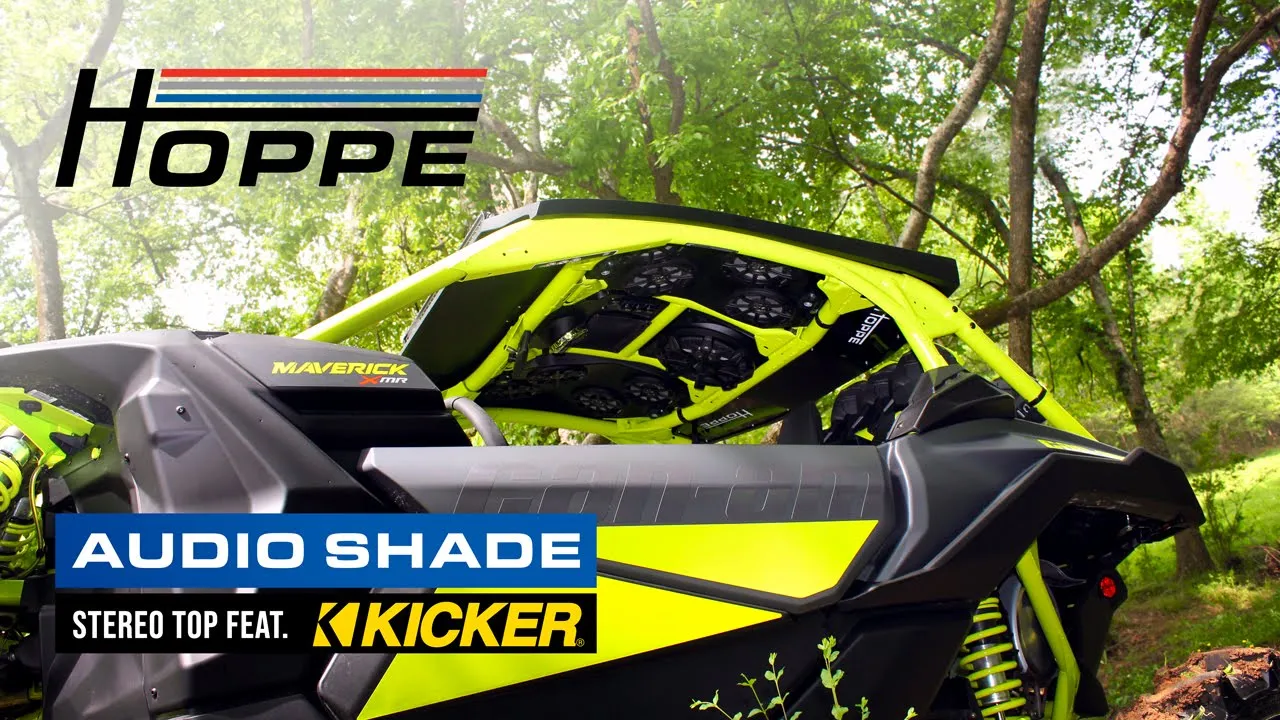 Introducing the Hoppe Audio Shade for the Maverick X3:The first off-road product line from Hoppe dares you to take it off-road in the loudest way possible! This solid stereo top for the Can-Am® Maverick X3 is packed with the ultimate media, light, and build features for the experience you never expected from your UTV.